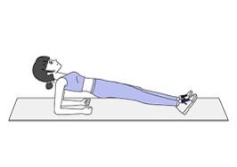 ①仰向けになり、肘・前腕・手のひらを床につける。