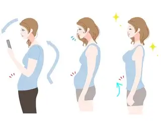 猫背になると、背筋が丸まる為、実年齢より老けて見られます。また、骨盤が歪み、内臓の位置が下がる為、ぽっこりお腹となり、体型も悪く見られてしまいます。