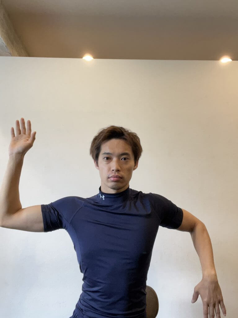 2.両肘を90度に曲げ、一方は手を上に、もう一方は下に。