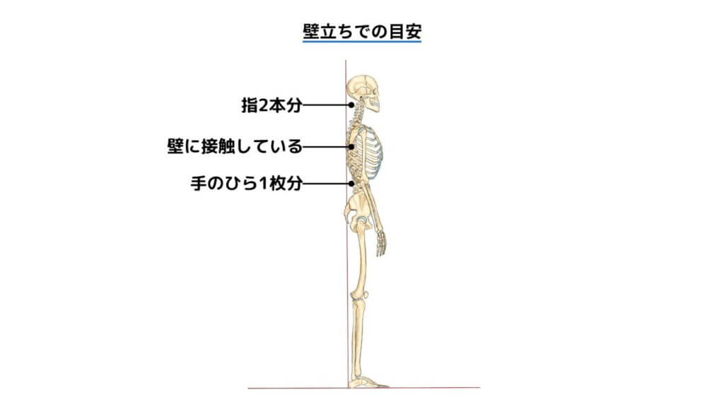 「踵・お尻・後頭部」の3点が壁に当たるように立った際に、以下の点をチェックします。